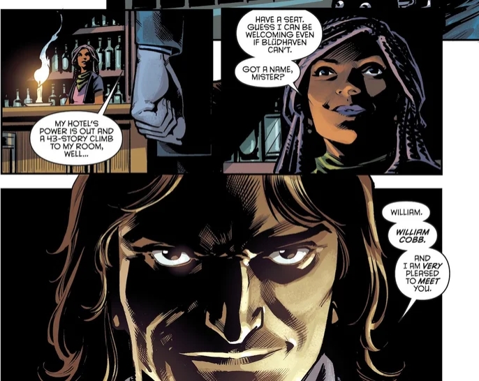 Cobb tem um plano de vingança para Ric, o qual coloca em prática aos poucos. Parte dele é seguir todos os passos do herói, incluindo até mesmo seus amigos mais próximos. Uma delas é Bae, quem ele segue até um bar. Com Asa Noturna ocupado, William encontrou o momento certo para ficar a sós com ela. E ele entra no local com a expressão que se assemelha a de Coringa em Piada Mortal, quando este bate a porte de Bárbara Gordon. Mexer com Bae depois de quase ter matado Zak, pode resultar em consequências extremas para Ric e Cobb. O encontro entre eles certamente será repleto de tensões.