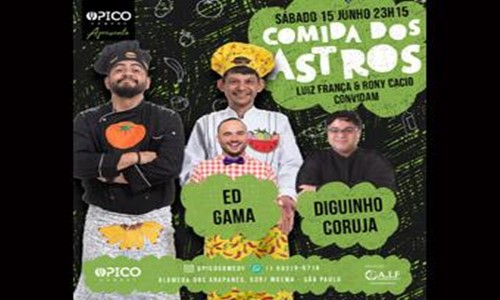 Instituto Pinheiro Comida dos Astros Postado por Redação Instituto Pinheiro em 14/06/2019 - 11:12:52 Tweet Comida dos astros com: Luiz França e Rony Cacio convidam: Diguinho Coruja e Ed Gama. Quando: Valor: tags: comedia, Stand-up
