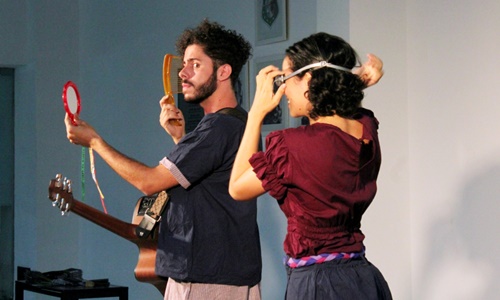 “Um conto lá, que eu canto cá” é uma contação de histórias e tem a música-jogo como um convite a brincar com as palavras. Em uma sucessão de histórias e jogos cantados, prepara-se um canto para começar a contar do menino que sempre se arrependia, mas que continuava ajudando quem encontrasse. E da menina que não lembrava de nada, mas continuava se aventurando. Cada um, em cada história, é sempre surpreendido.