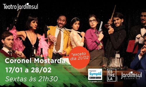 Coronel Mostarda (Eddy Stefani) Dr. Magenta (Luis Galves), Sr. Marinho (Mauricio Ferraz), Rosa (Cláudia Braga), Violeta (Renata Roberta), Srta. Branca (Marina Cincotto), Professor Black (Heder Becker) e Mordomo Bordô (Lucas de Roma) são os personagens deste jogo que ganham vida neste espetáculo cômico de improviso teatral com muito suspense, mistério e blues.
