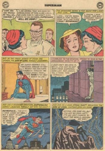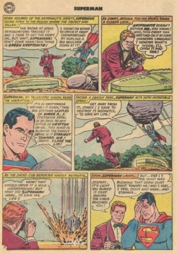 Na trama, quando um objeto de Krypton pousou na Terra e Jimmy Olsen o abriu, Superman percebeu que havia um “vírus X” dentro dele. Em seguida, Superman começou a sentir fraqueza e tontura. Depois disso, ele pediu para que Jimmy Olsen o acompanhasse ao médico, até porque o fotógrafo também poderia ter sido infectado.